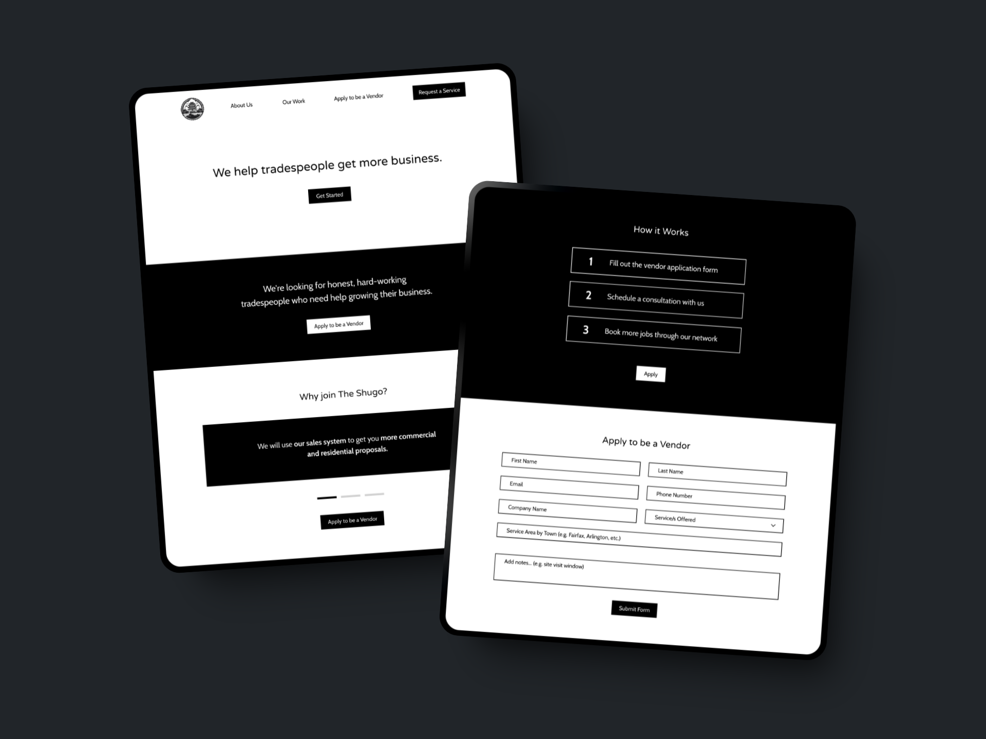 Full website design from scratch, including branding, for an innovative B2B startup driving business for contractors